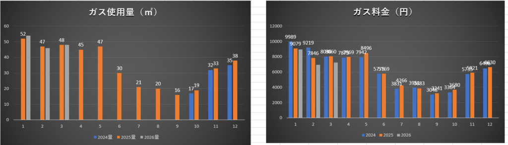 ガスはエルピオ。使用量は前年同じですが、料金はこちらも何故か安くなっています。
